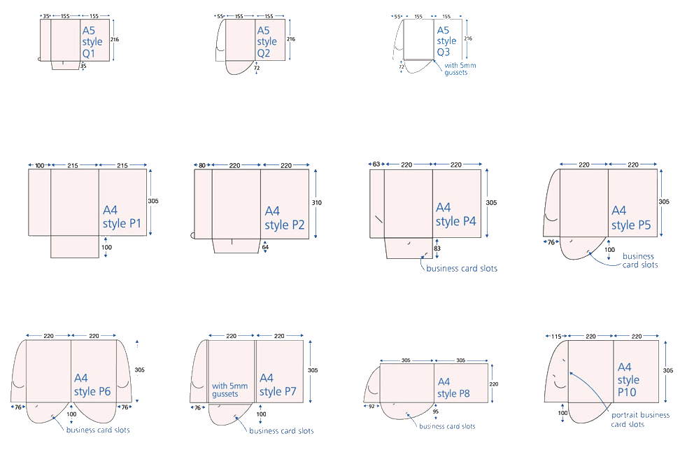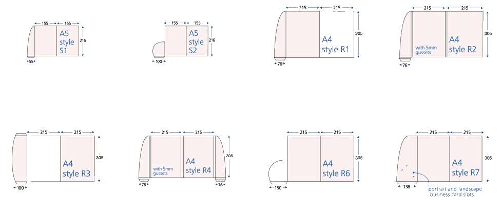 Choose from our selection of existing folder templates. The layouts to each template can be seen in the images below. Choose the style you like and download InDesign template for that group.